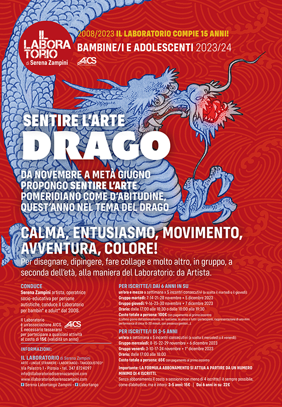 Serena Zampini artista, operatrice socio-educativa per persone autistiche, conduce Il Laboratorio per bambine/i e adulti dal 2008. Il Laboratorio è un’associazione AICS.
