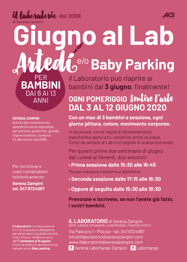 A breve il calendario, i contenuti e i costi…comunque sarò al Laboratorio tuuuuttaaaa l’estate, come sempre ( anche le settimane di San Jacopo + quella di Ferragosto), senza saltare nemmeno una settimana. Dal 10 giugno fino al 13 settembre, DAL LUNEDI’ AL VENERDI’, ovvio. TUTTE LE MATTINE.