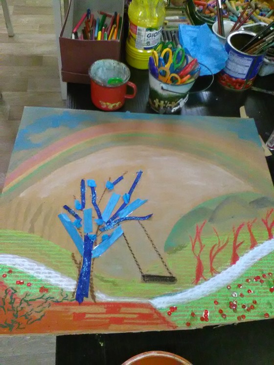 -I materiali sono tutti già qui! e le opere che verrano create sono di proprietà di ogni giovane artista! E si recuperano tutte l’ultimo giorno della settimana, il venerdì, non prima, non dopo (a meno che non resti qualcosa da asciugare!).