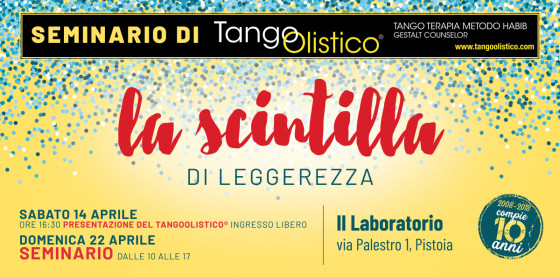 La Scintilla di Leggerezza è un seminario condotto e ideato da SerenaGioia Zampini, operatrice trainer di TangoOlistico® dal 2014 – lavora su Pistoia e Toscana principalmente – a richiesta anche fuori zona.