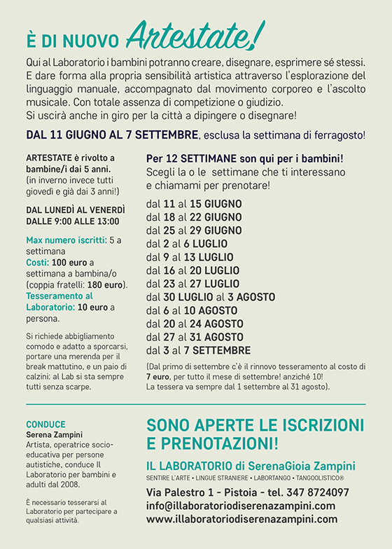 ARTESTATE per BAMBINI al Lab. Dall’ 11 giugno… al 7 settembre